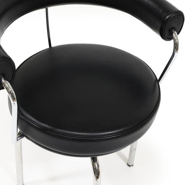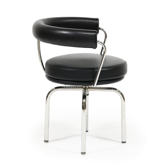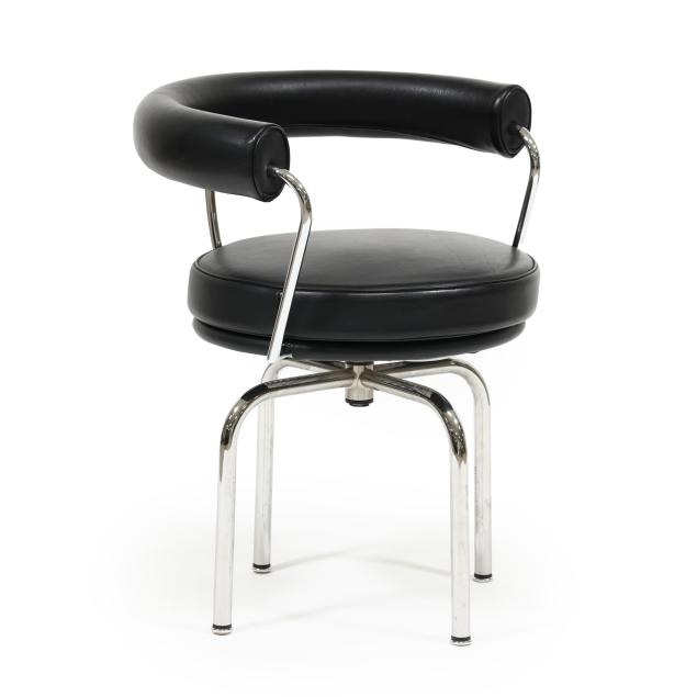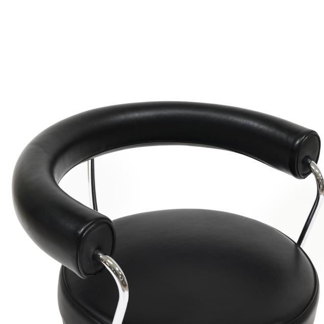 Contemporary production after the 1927 design, by Cassina, black leather, polished steel, swivel seat, labeled and impressed for Cassina.