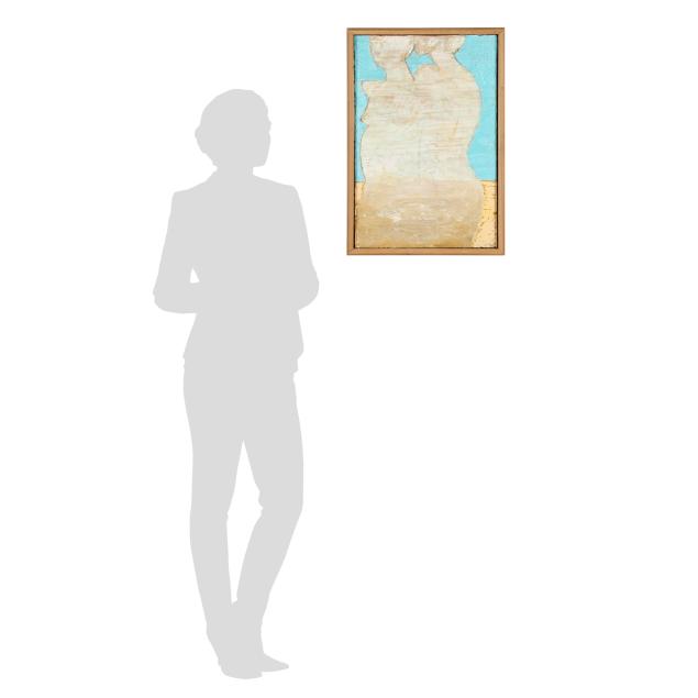 Encaustic on panel, signed to the verso, presented in a wood floater frame.