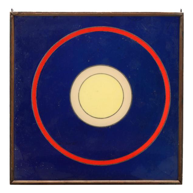 Colored acrylic/plexiglass in yellow, cobalt, beige, and red, not signed, presented in a wood frame.