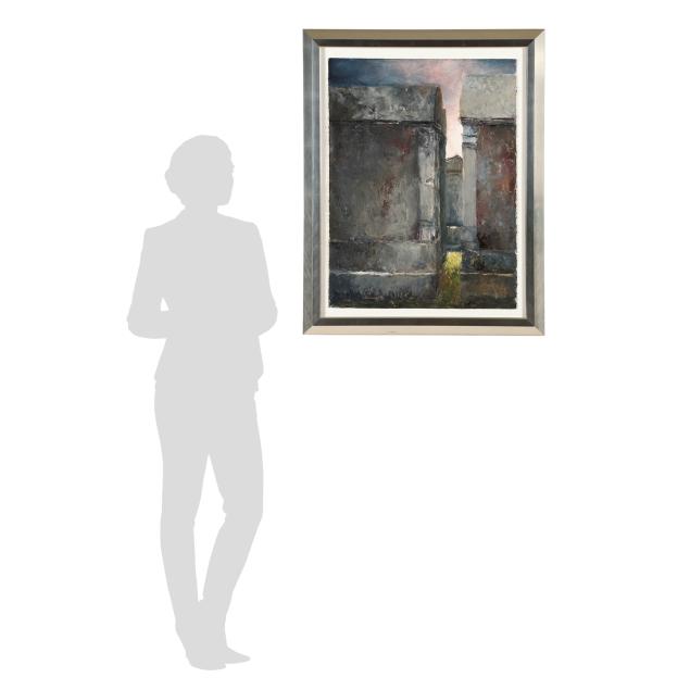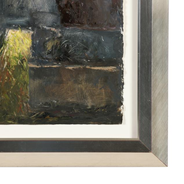 Oil on paper, signed, titled, and dated to the verso, mounted in a silvered frame below glass.