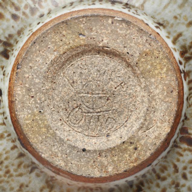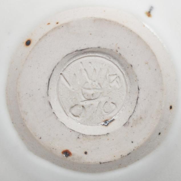 Often described by Otto as “rugged but elegant,” their work was valued for its natural materials and earthy appearance. The couple deeply appreciated Japanese aesthetics, a style promoted in ceramics by the famed British potter Bernard Leach, who Otto was fortunate enough to meet in England while on leave from his military service. Vivika and Otto often adorned their vessels with decorative elements influenced by Japanese calligraphy.