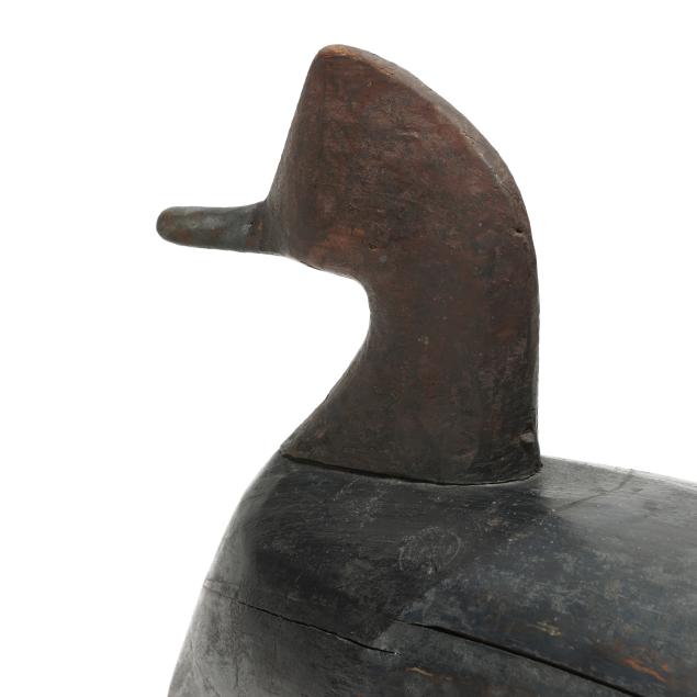 Stant White made his decoys for use in the market hunting era. His unique decoys have a folksy but pleasing appearance. The bodies have a deep slant in the breast and are rounded in the back like a boat.