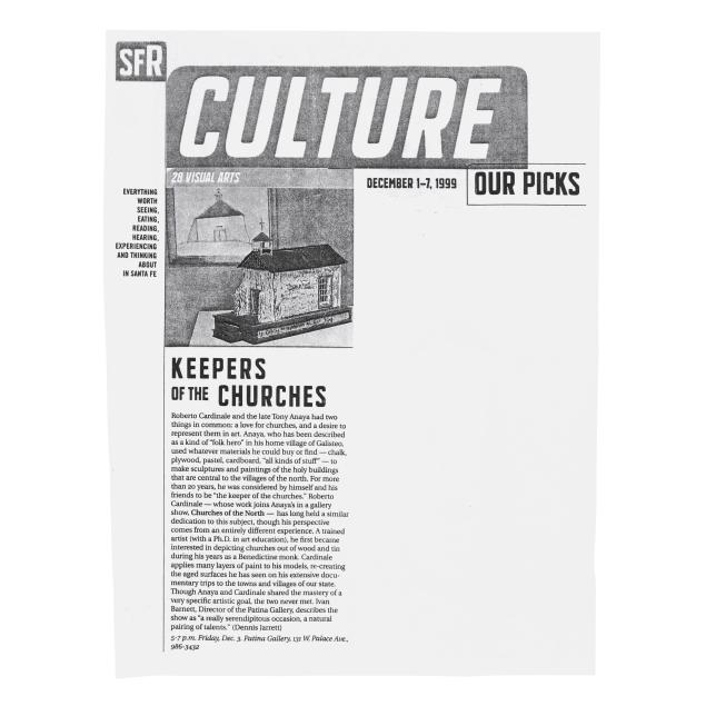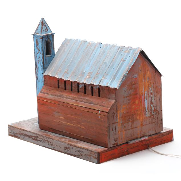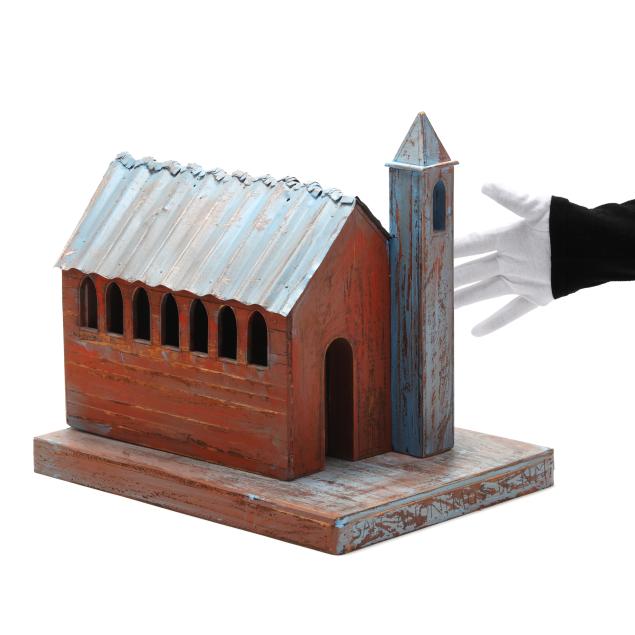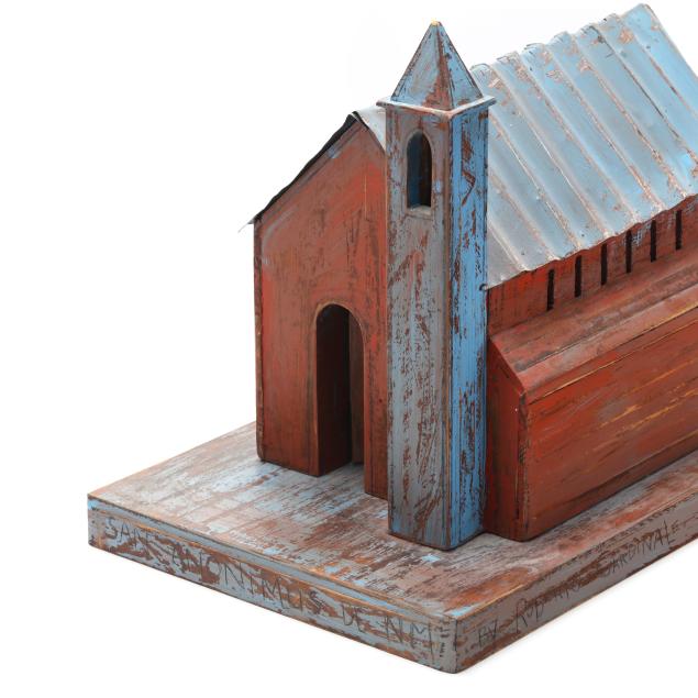 The church form speaks to Roberto’s love of ecclesiastical architecture and springs from his monastic background and southwestern travels. The churches, built of pine and richly painted, are about 12" wide and 16" high and vary in length. He began making his churches in 1985 and spends between 60-90 actual work hours on each piece. The works are sculpture rather than models which strive to capture the spirit, age, and beauty of each church, whether real or imagined. He has made well over 500 unique pieces and focuses on the churches and synagogues in New Mexico, Texas, California, Mexico and many from Italy, France, Spain, and England.