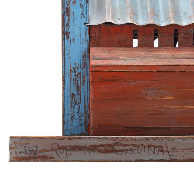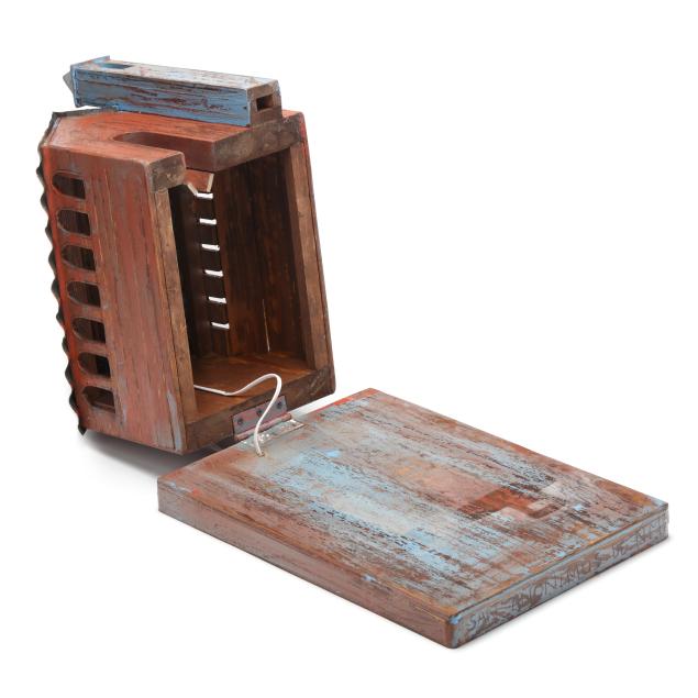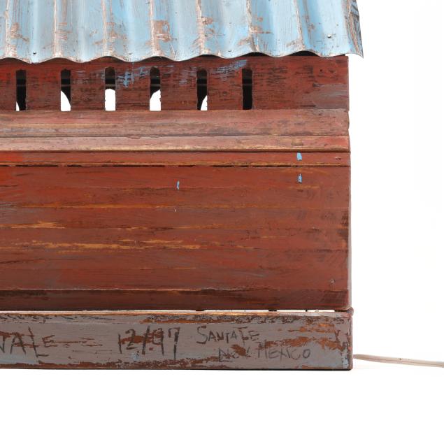 1997, polychrome painted pine and metal, inscribed signature and date with title to the platform profile, electrified to the interior for illuminated display.