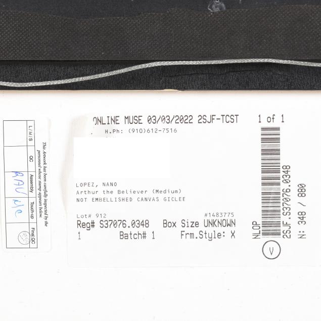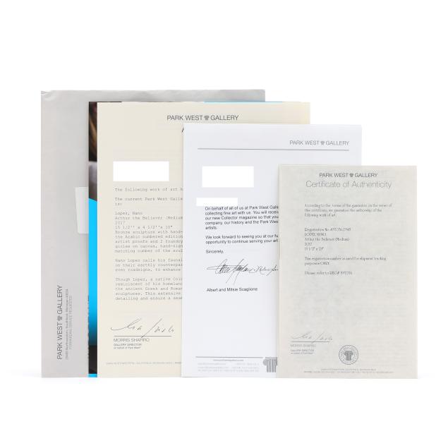 Included with the sculpture is gallery paperwork and a certificate of authenticity, as well as a framed giclee print of the subject, signed and edition numbered 348/880 to the lower corners.