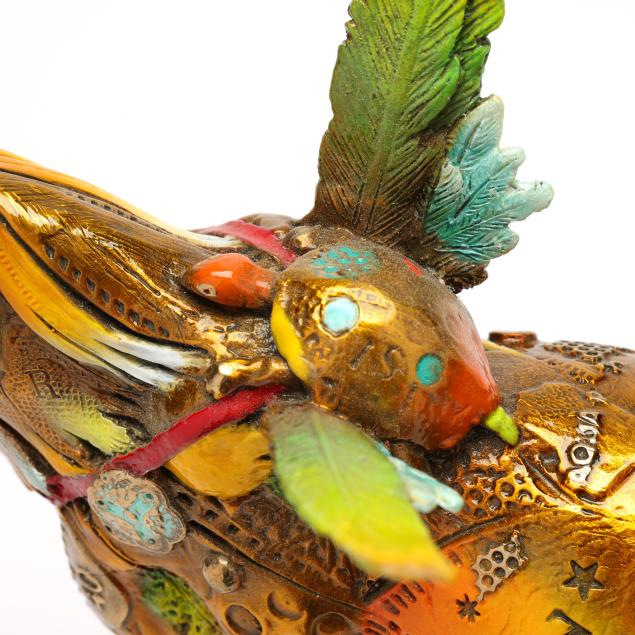 Lopez’s sculpture is an artful amalgam of the bright colors of a Colombian market place; animals precariously laden with Pre-Columbian and contemporary artifacts. When looking closer, his work invites us to observe the world more carefully and discover for ourselves the rich interconnection of life. Nano Lopez is an artist gifted with the rare ability to see the world with exploration, wonder, and creativity. He is deeply fascinated by the mysteries of life and its inherent struggles. In his artistic process, Nano utilizes the "lost wax" casting method, and integrates organic textures and human-made objects into his bronzes to create pieces of art that reflect the same depth and richness he sees in the world around him.