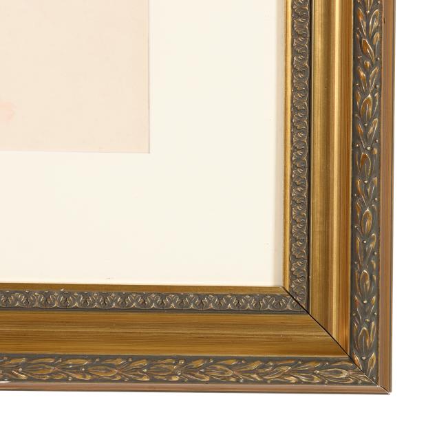 Some toning and flaking to the upper portion of the sheet, a few areas of creasing, small tear to left edge, not examined outside the frame.
