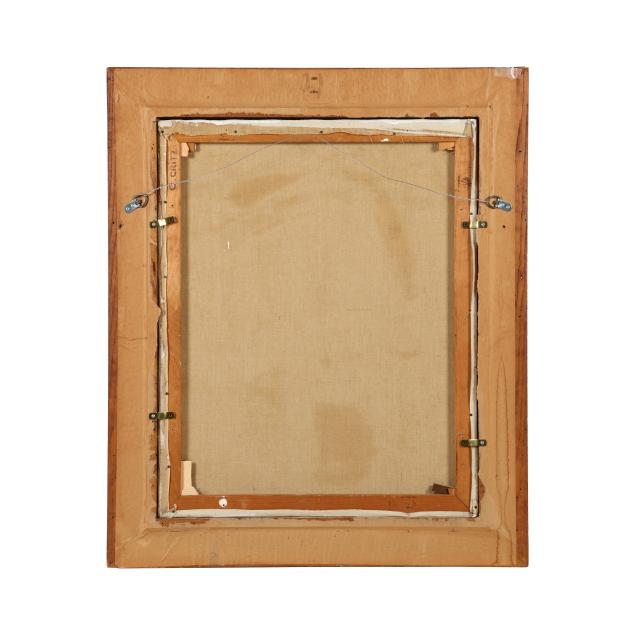 Oil on canvas, signed to verso stretcher, presented in a carved wood frame.
