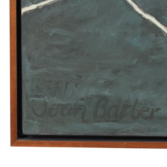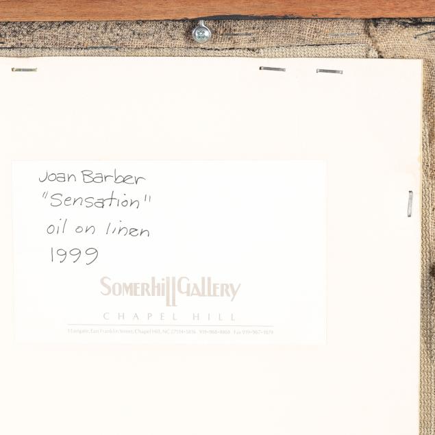Joan Barber is an American painter recognized for her figurative and narrative works that often feature women in surreal, patterned settings. She studied at the Museum Art School in Portland, graduating in 1963, and has exhibited widely across the United States. Working primarily in oil on linen or canvas, Barber combines storytelling and psychological depth in her imagery. She currently lives and works in Great Barrington, Massachusetts.