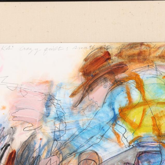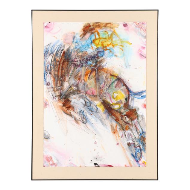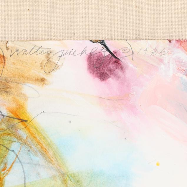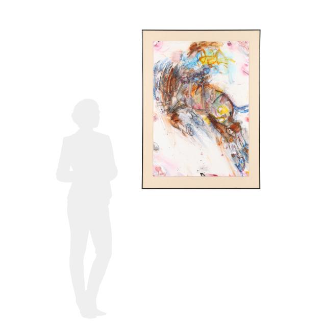 Watercolor, graphite, and acrylic on paper, 1986, pencil signed and titled to upper edge, retaining gallery label to verso, mounted and framed below glass.
