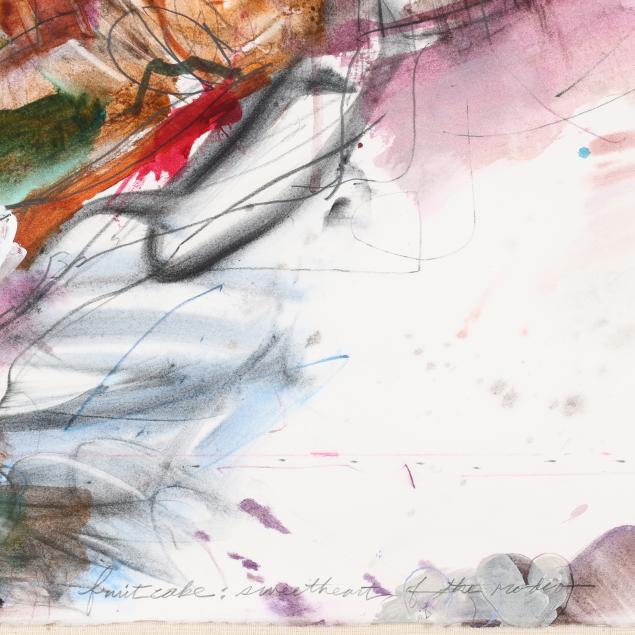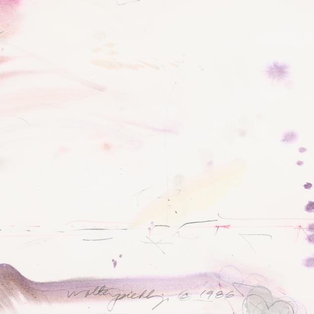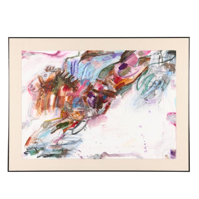 Watercolor, acrylic, and graphite on paper, 1986, signed and dated to the lower edge, mounted and framed below glass.
