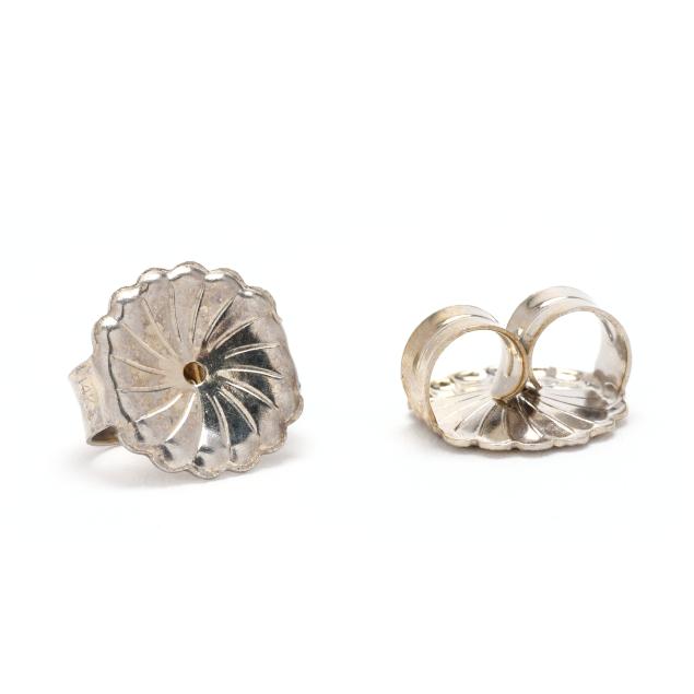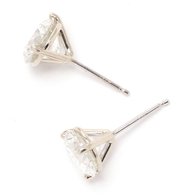 pair of round cut brilliant diamonds (7.15 - 7.22 x 4.55mm; 7.29 - 7.31 x 4.60mm) weighing 1.50 carats and 1.51 carats (actual) (F color, SI2 clarity; I color, I2 clarity), in three-prong settings, and completed with post and friction backs, posts and backs stamped 14K.