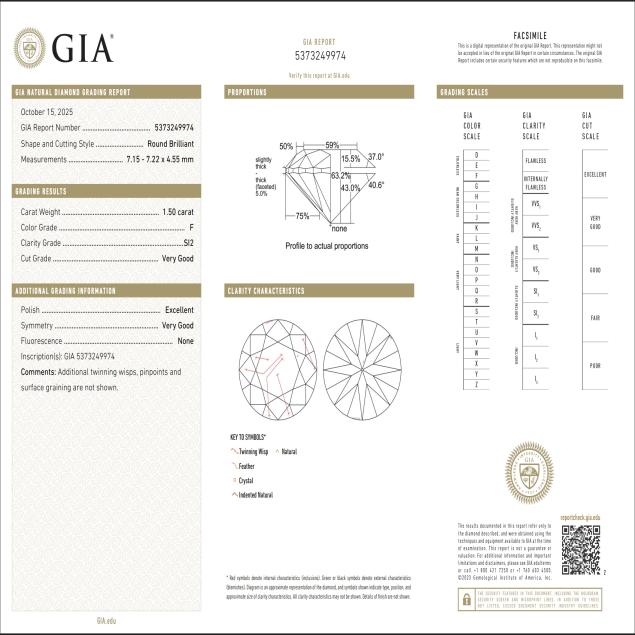 GIA Report number 5373249974 dated October 15, 2025.