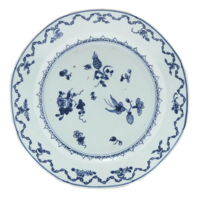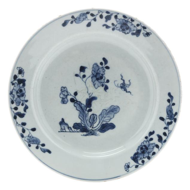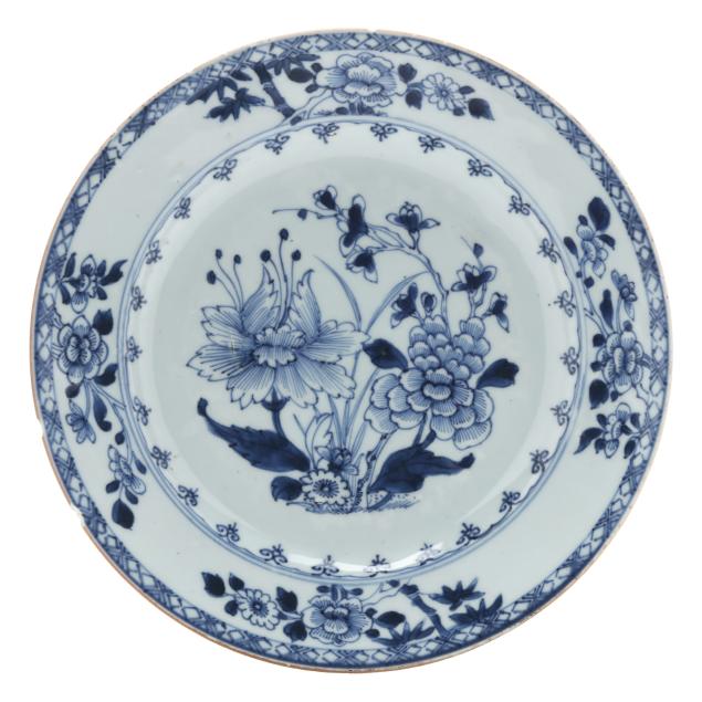 Late 18th century, porcelain dishes hand painted in underglaze blue with floral patterns, unmarked.
