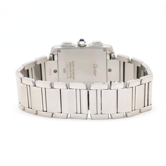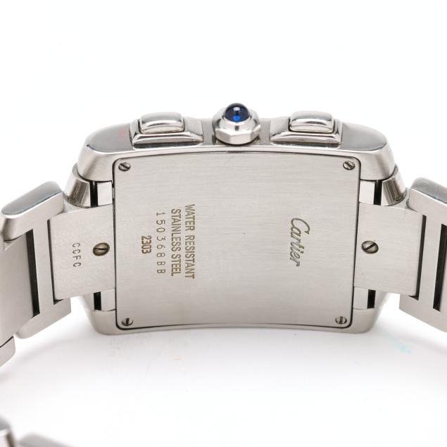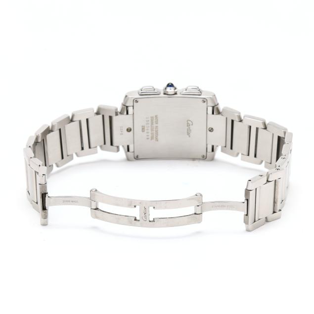 The Cartier Tank Française Chronoreflex quartz movement, made in collaboration with Piaget, features both perpetual calendar and chronograph complications.