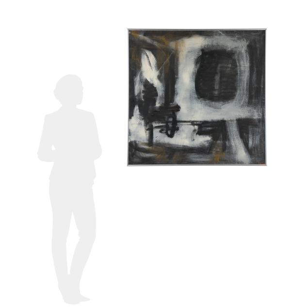 Acrylic on canvas, 1962, signed at lower right, inscribed to the verso, framed.
