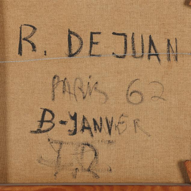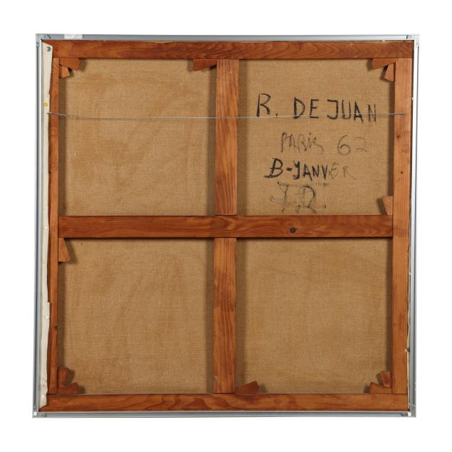 From the Collection of the late Nina Ayala Mallory Ronaldo de Juan was an Argentine painter recognized for his role in second-generation Abstract Expressionism. Born in Córdoba, Argentina, he studied at the Escuela Superior de Bellas Artes of the National University of Córdoba and was an early member of the Grupo de Pintores Modernos de Córdoba, exhibiting alongside Antonio Seguí, Raúl Pecker, Pedro Pont Vergés, and Marcelo Bonevardi.