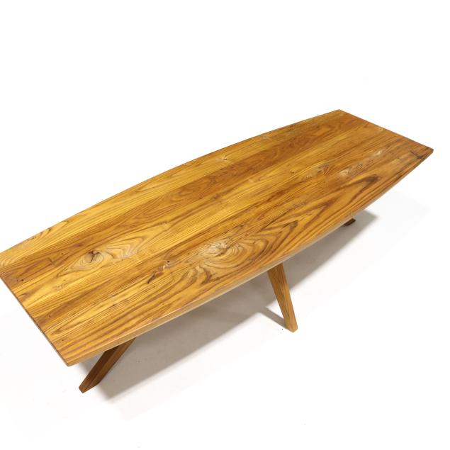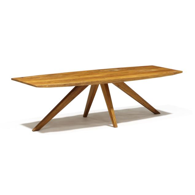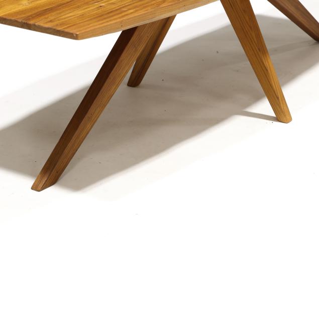 Contemporary, lozenge form top on splayed leg base, marked "Remade in the USA."