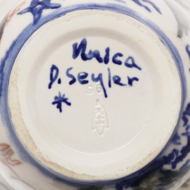 David Warren Seyler was born in Dayton, Kentucky on July 31, 1917. His formal arts education began in 1933 at the Art Academy of Cincinnati. He would go on to attend the University of Chicago and earned his BFA at the School of the Art Institute of Chicago (1941). He attended the University of Colorado in the summer of 1951, and then returned to Chicago where he received his MS in Applied Art in 1955 from the School of the Art Institute. Seyler studied sculpture, painting, and printmaking, though his pursuits were much broader and a prolific career included graphic design, ceramics, stained glass, weaving, and furniture design and carpentry, among other art forms and media. He worked for Rookwood Pottery in Cincinnati (1936-39), and for Kenton Hills Porcelains, Inc. in Erlanger, Kentucky in the 1940s.