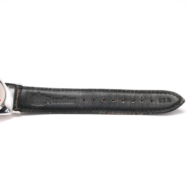 Signs of light wear to leather strap; good estate condition; running at time of examination. Please see Terms and Conditions of Sale: Clocks and Watches.