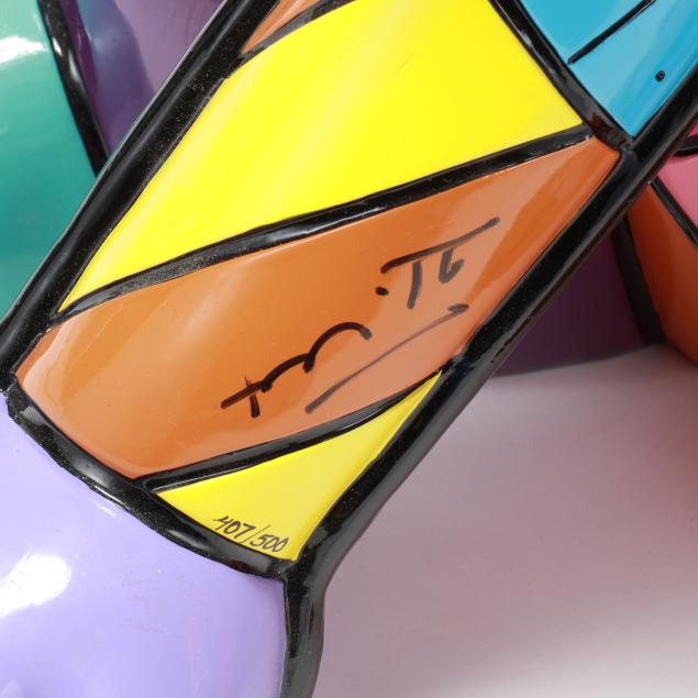 Private Collection, Oak Island, North Carolina Romero Britto is a Brazilian artist known for his vibrant, Pop-infused style that combines elements of Cubism, Street art, and graphic design. His colorful, optimistic works have been exhibited internationally and are featured in collections including the Pérez Art Museum Miami and the Smithsonian Institution.