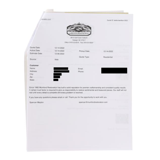 Overall good condition with later upholstery; 2022 Mumford Restoration invoice included with the lot which describes the work done including new webbing and foam.