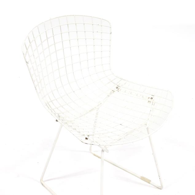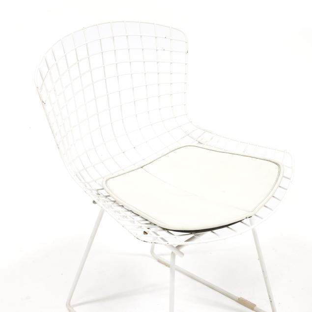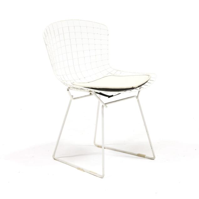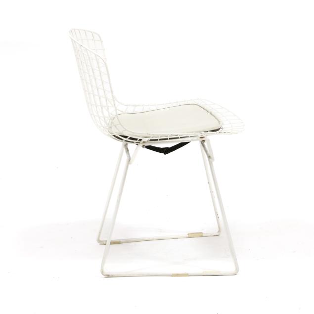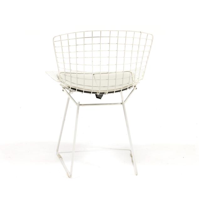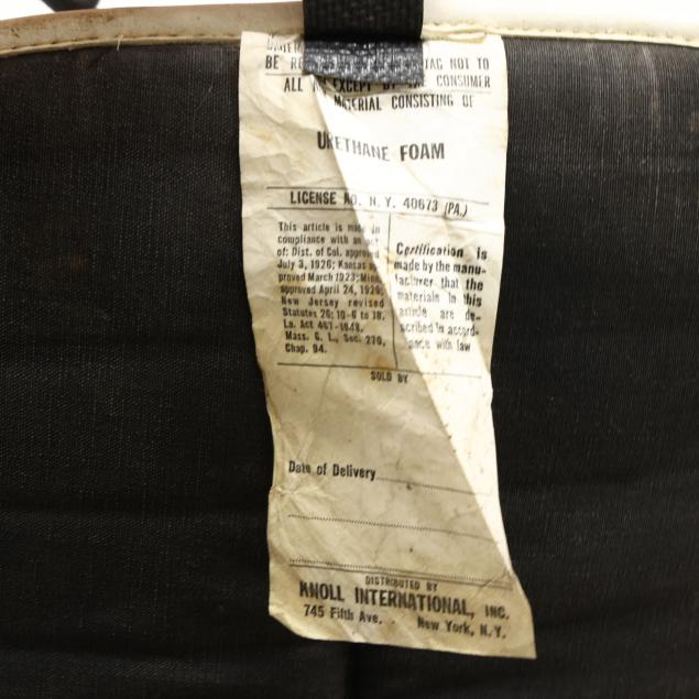 Knoll International, circa 1970, white enameled metal frames with white Naugahyde seat cushions, labeled.
