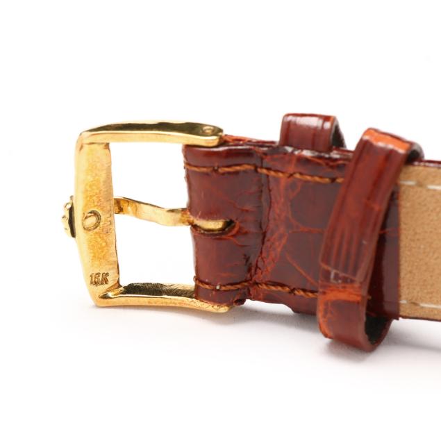 Split to leather strap keeper; good estate condition; running at time of examination. Please see Terms and Conditions of Sale: Clocks and Watches.