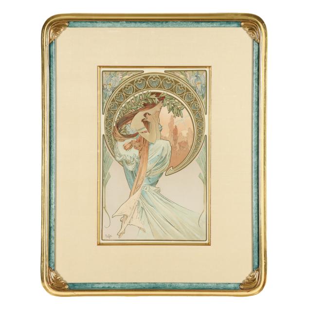 Private Collection, Richmond, Virginia One of the earliest and most influential graphic artists, Alphonse Mucha's distinctive style helped define the Art Nouveau movement at the turn of the 20th century. Characterized by flowing lines, organic forms, and intricate ornamentation, Art Nouveau emphasized harmony between art and nature across architecture, design, and the visual arts. Mucha’s elegant posters—often featuring idealized female figures surrounded by botanical motifs—became iconic examples of the style.