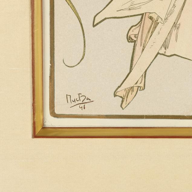 Lithograph in colors, 1898, Imp. F. Champenois, Paris, with printed signature and date lower left, presented in Art Nouveau style frame. Rennert/Weill 54.