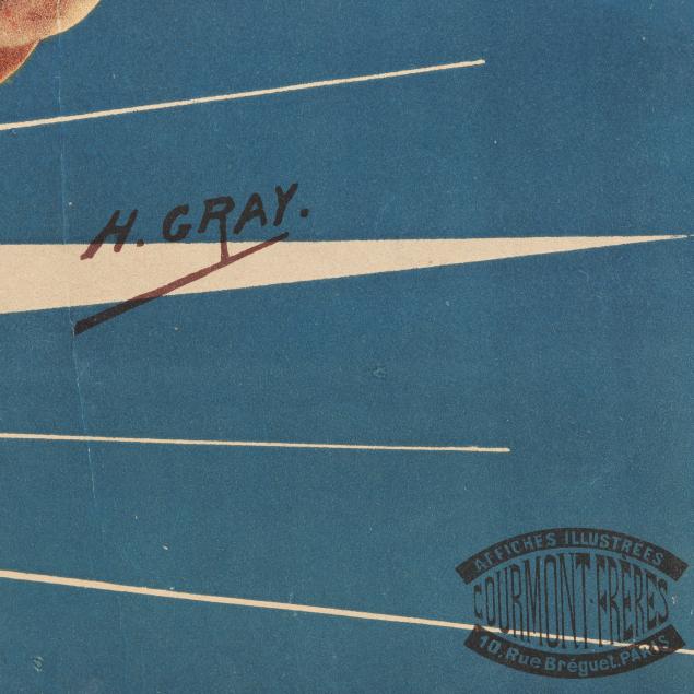 Lithographic poster in colors, 1897, printed by Courmont Frères, Paris, matted and framed.