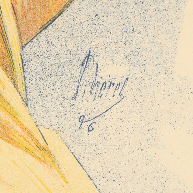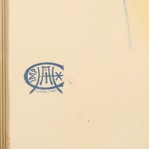Lithograph in colors, 1896, Imp. Chaix, Paris, a proof before the addition of letters, matted and framed. Broido 219.