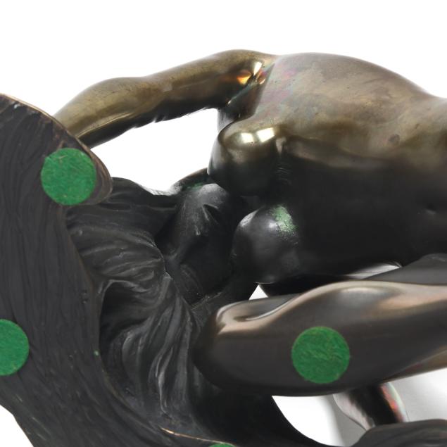 From the Estate of Anne M. Fields, Greensboro, North Carolina California based twin artists, Tom and Bob Bennett, were known for their expressive sculptures that blended styles of naturalism and abstraction, utilizing fluid forms. They began to work in bronze in 1974, and as their popularity grew, they opened galleries throughout the United States. They built their own art foundry in the mid-seventies, which allowed them full control over the quality of their work.