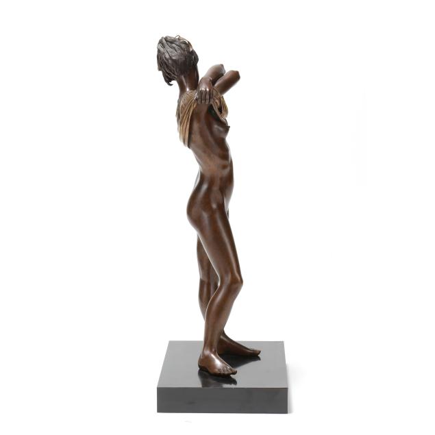 From the Estate of Anne M. Fields, Greensboro, North Carolina Born in Austria in 1921, Isidore Margulies (also spelled Marguilies) was well known for realist bronze figural sculpture. Margulies studied at Cooper Union Art School, New York (1938-40) and later received his B.A. from the State University of New York at Stony Brook (1974) and his M.A. at C.W. Post College, Brookville, New York (1975). Among his honors were two Awards of Excellence from the Hecksher Museum in 1978 and 1979, and the Council of American Artists Award from the National Sculpture Society in 1979. The later organization also presented him with a gold medal in 1980. He is a fellow in the National Sculpture Society where he served on the Executive Council from 1987-1992.