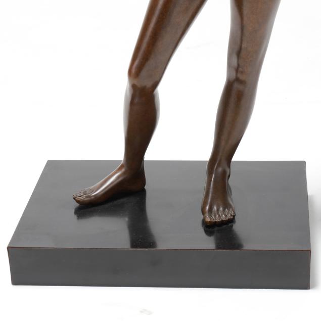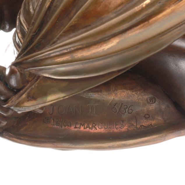 1980, patinated bronze, signed IMARGULIES, edition number 6/36, dated and signed "© 12/80 Margulies" with Joel Meisner foundry mark near the left shoulder, mounted atop a laminated base.