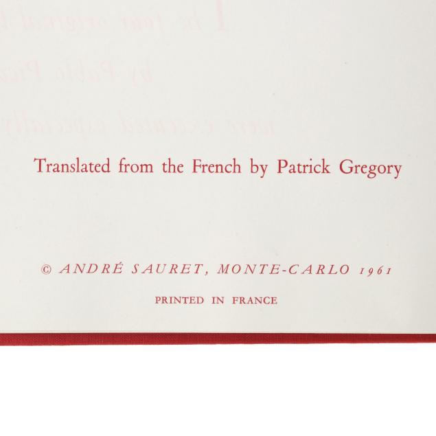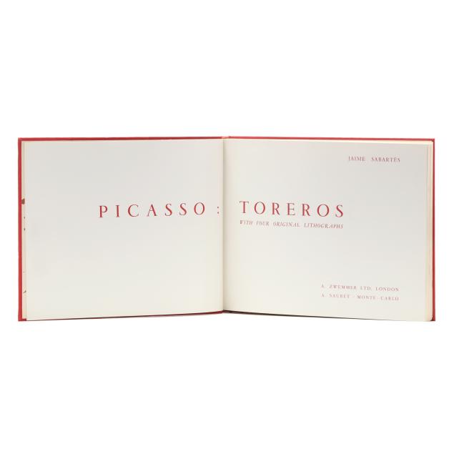 Picasso: Toreros. London: A. Zwemmer; Monte Carlo: A. Sauret, 1961. Hardcover. Red decorated cloth; in slipcase. Oblong 4to; 153pp. Text in English.