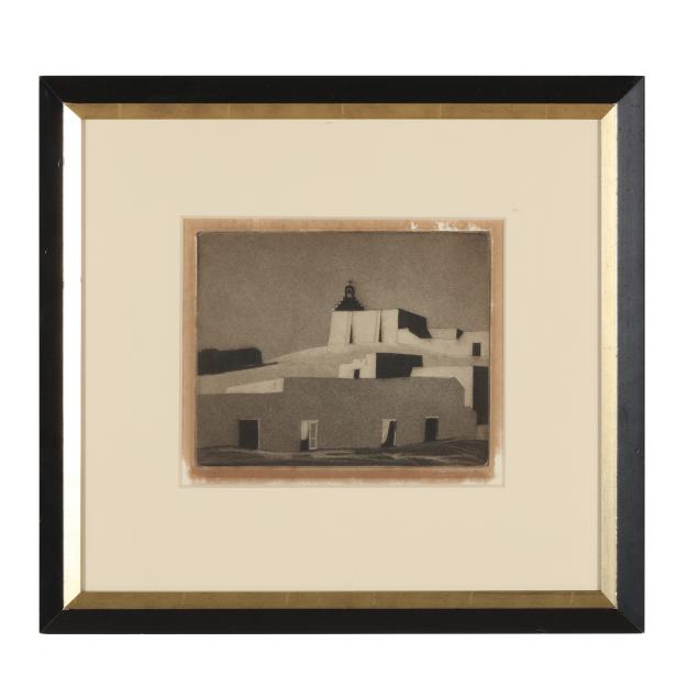 Doel Reed was an American artist celebrated for his mastery of aquatint printmaking and his evocative depictions of the Southwestern landscape. Deeply inspired by the light, terrain, and architecture of New Mexico, Reed developed a distinctive style that captured the region’s quiet drama and enduring beauty.