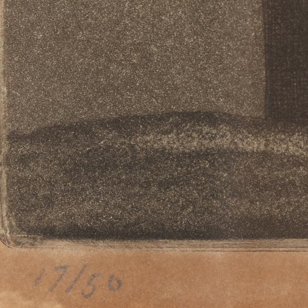 Etching and aquatint, pencil signed and numbered "17/50" to lower margin, matted and framed below glass.