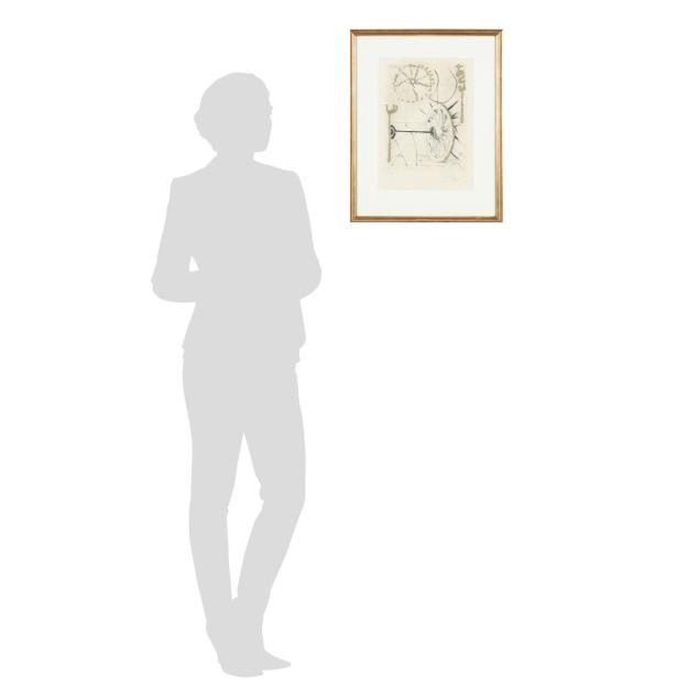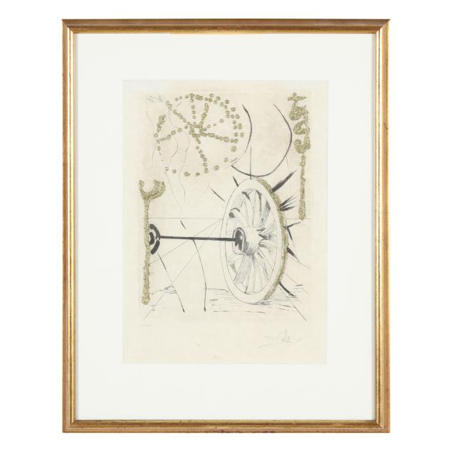 Drypoint etching with detailed gold flakes on Japan paper, 1974, pencil signed and numbered CLXIII/CC, special edition published by Editions Pierre Belfond, Paris, from