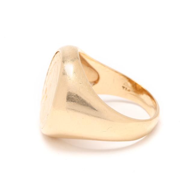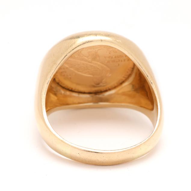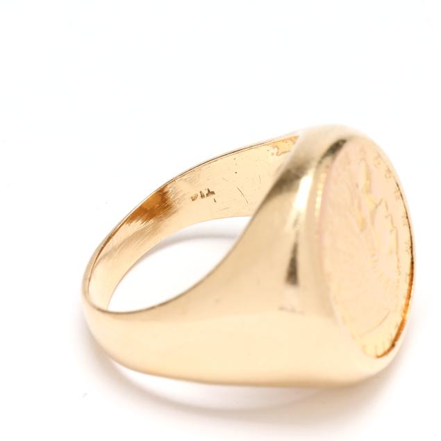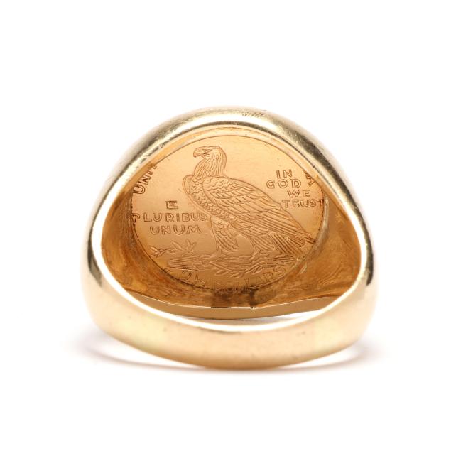 The replica Indian Head $2.50 coin dated 1913 bezel set within a ring, with partial stamp, ring testing 14KT, coin XRF testing 18KT.