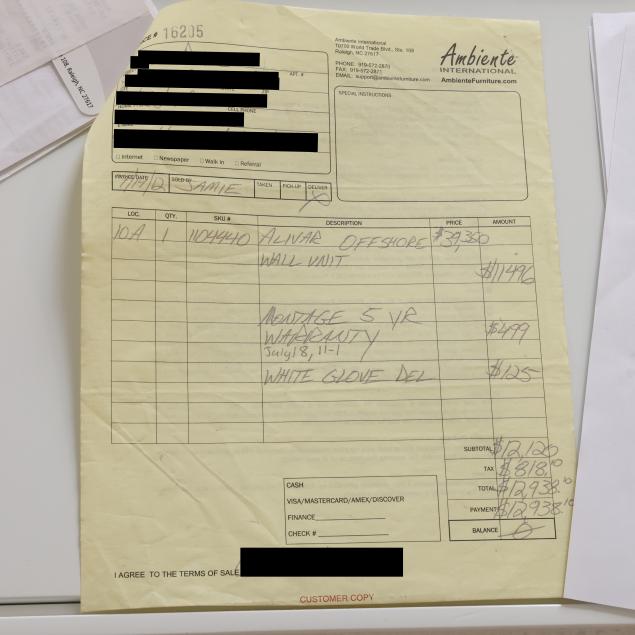 Currently disassembled (photos taken en situ from the consignors home); one back mounting panel with some minor loss (does not compromise the structural integrity); overall good usable condition.