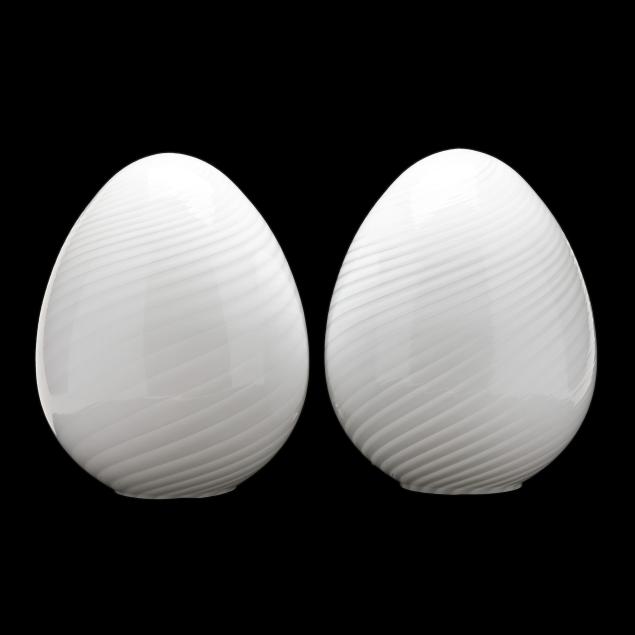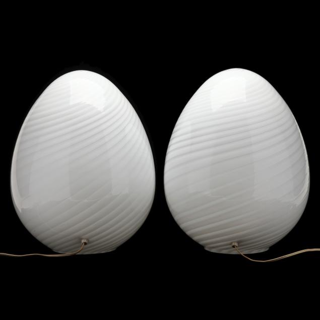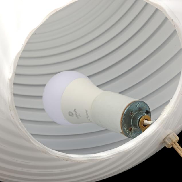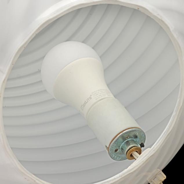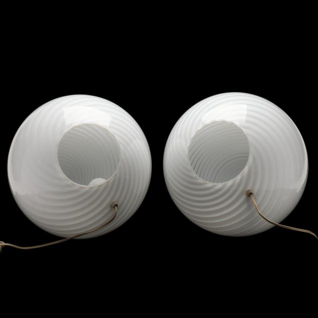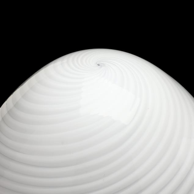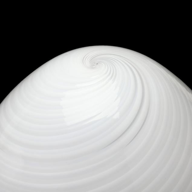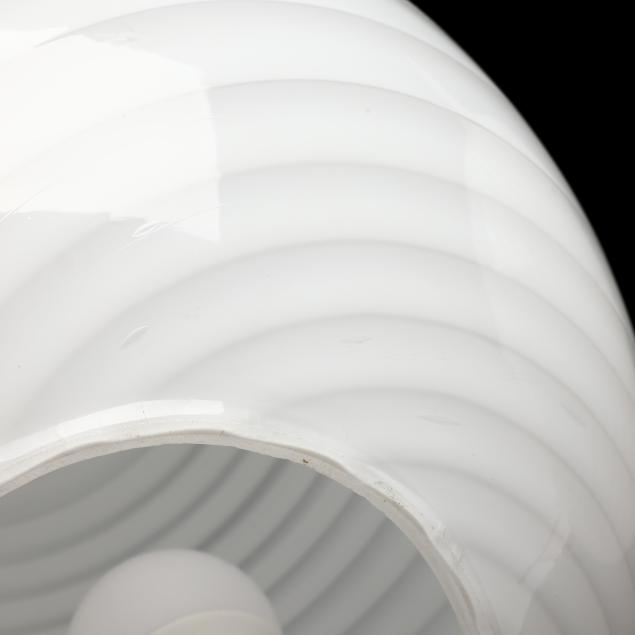 Circa 1970, blown white swirl glass, single interior light, unmarked.