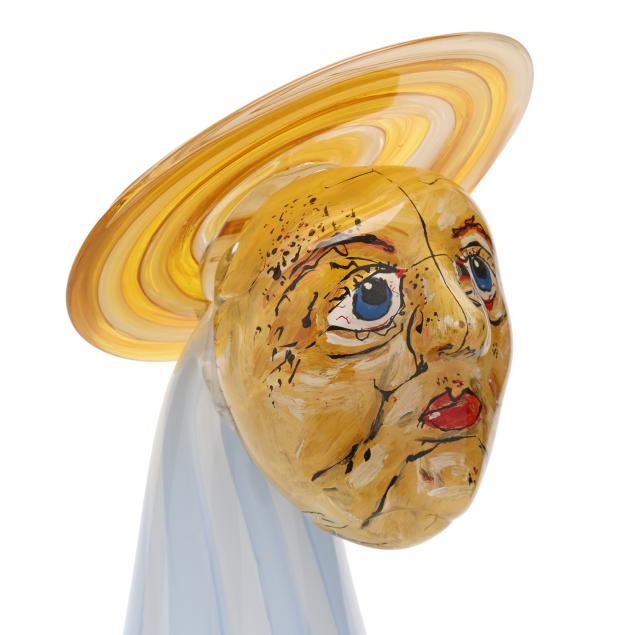 2005, blown and assembled glass with reverse painted details, signed.