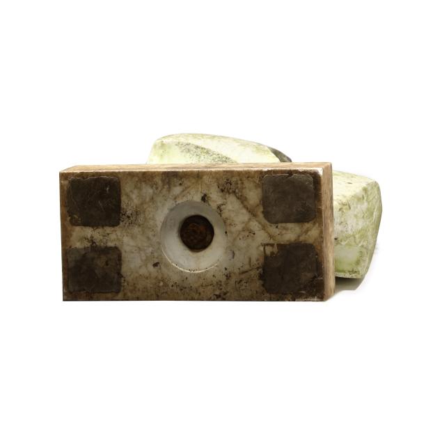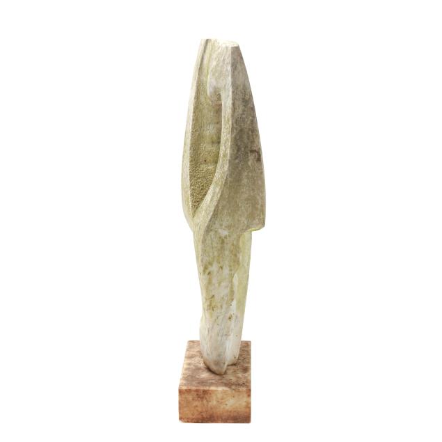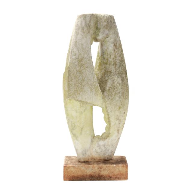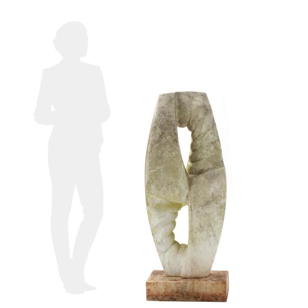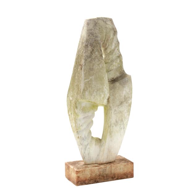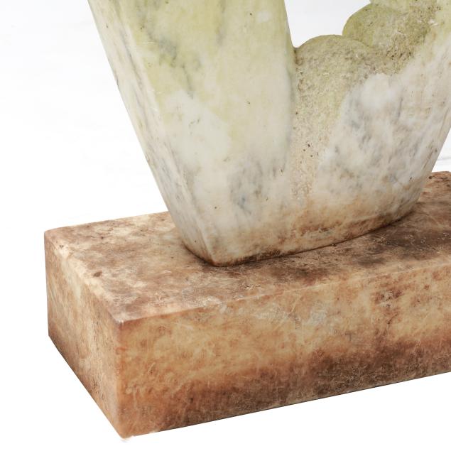 Late 20th century, carved marble, two-part organic form with pieced upper and lower halves, unsigned.