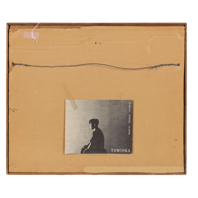Oil on canvas, circa 1969, signed at upper left, with Funaoka Canvas stamp to verso and retaining gallery postcard, framed.