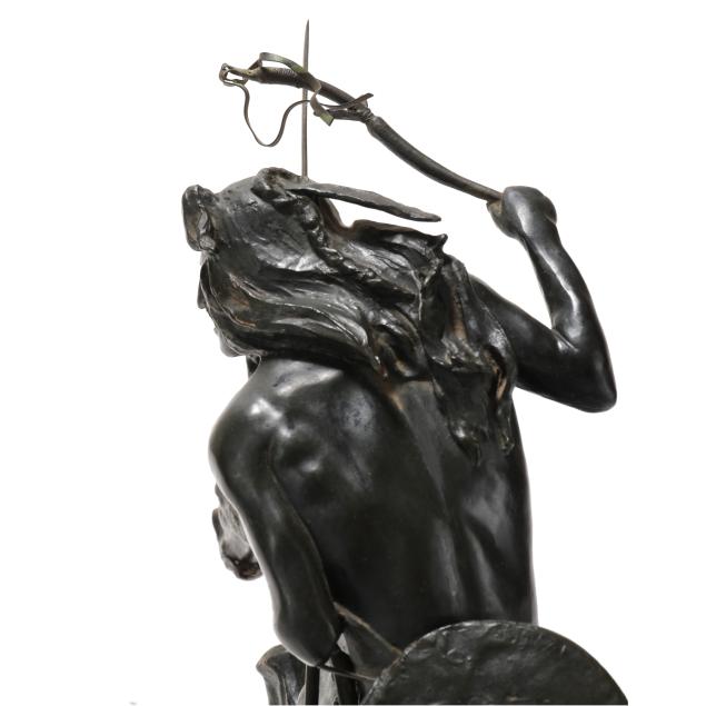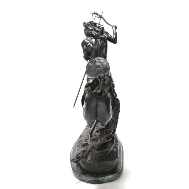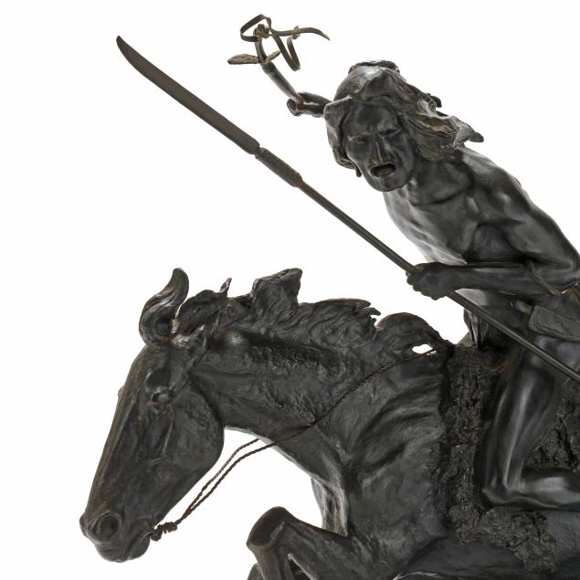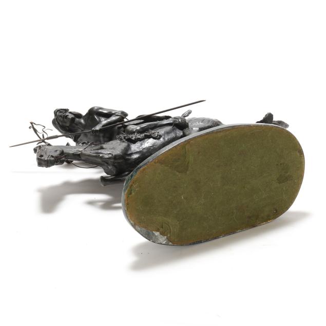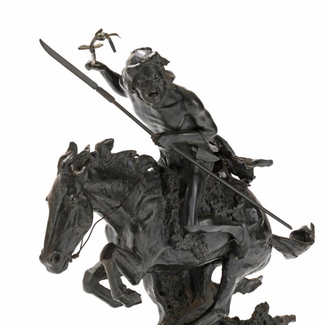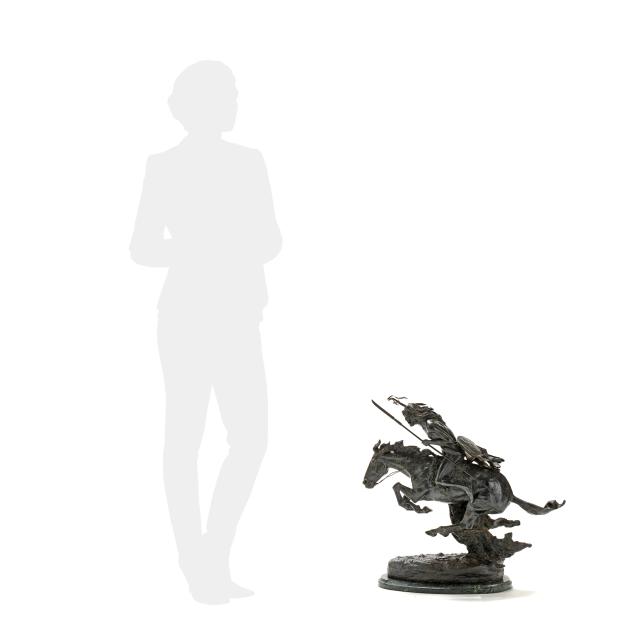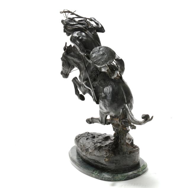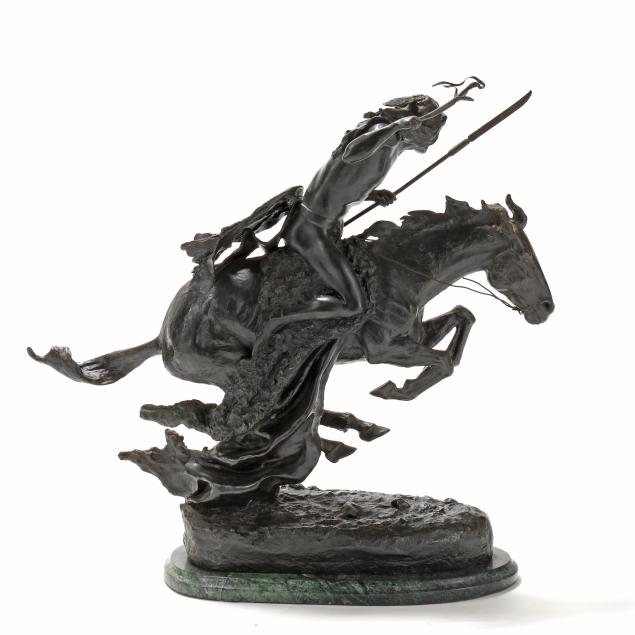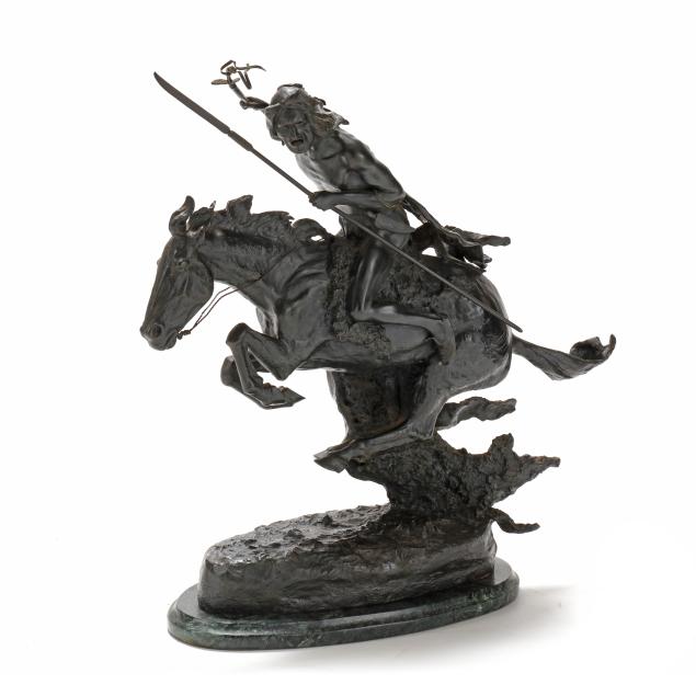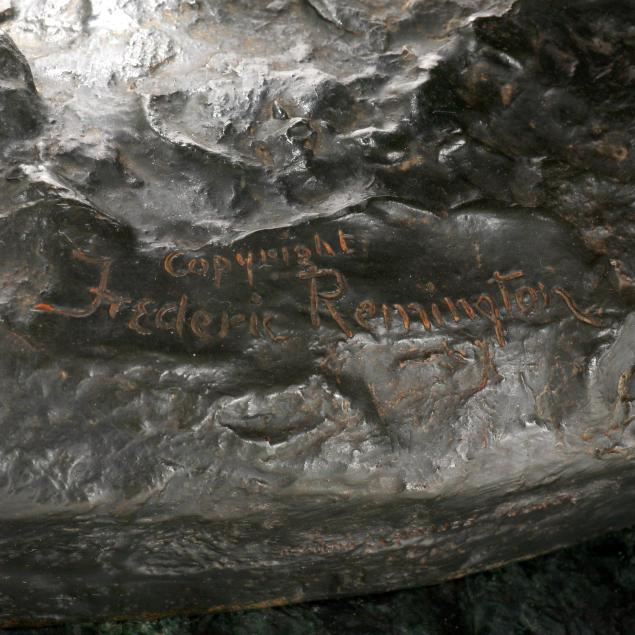 Second half 20th century, patinated bronze, signed "copyright / Frederic Remington" in the casting, after the original modeled circa 1901 and cast by 1907, mounted atop a green marble base.