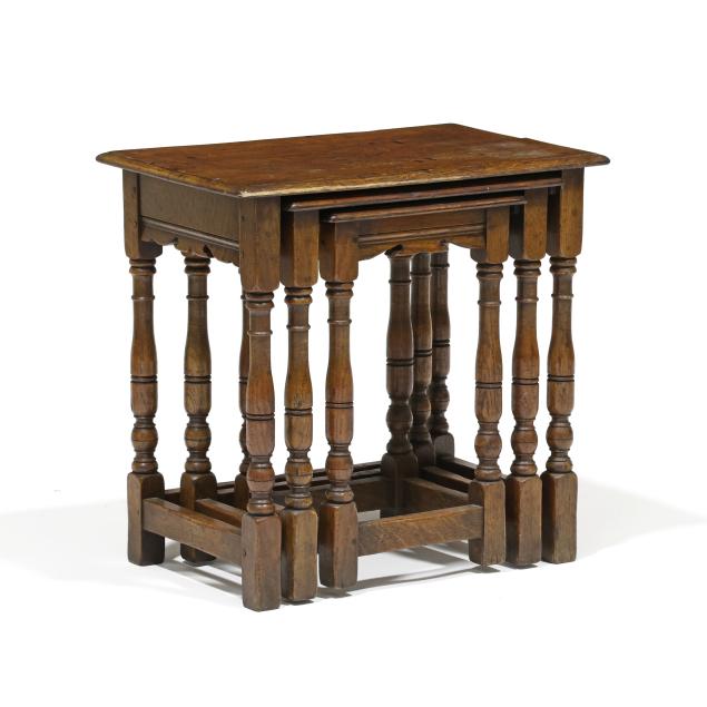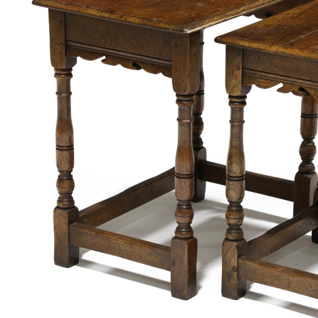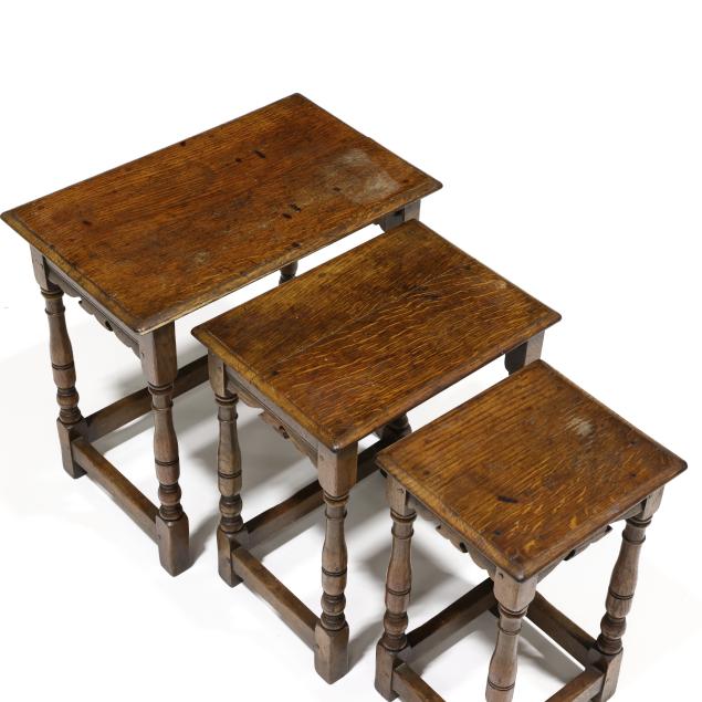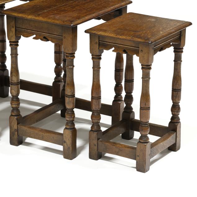 Nest of Three Tudor Style Oak Tables