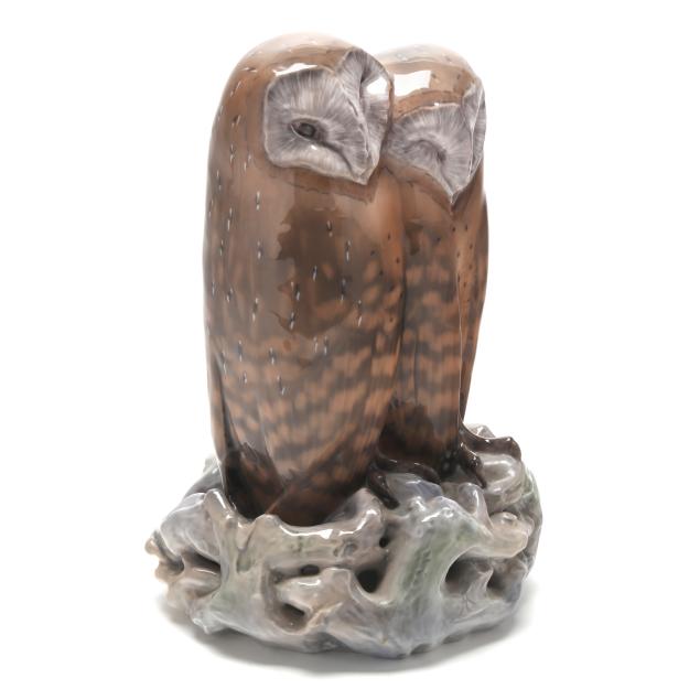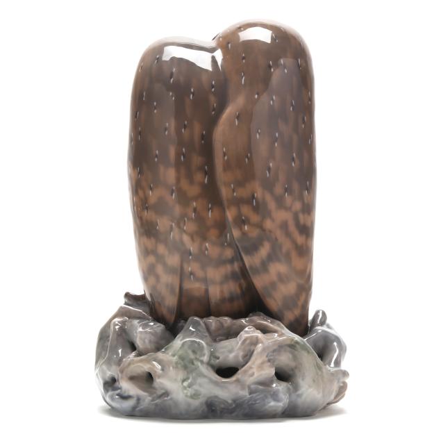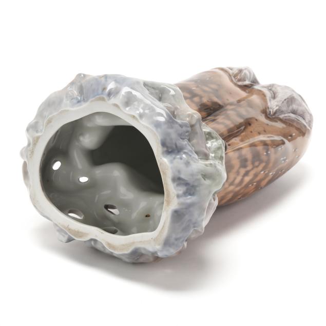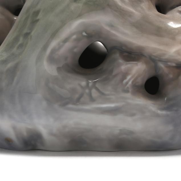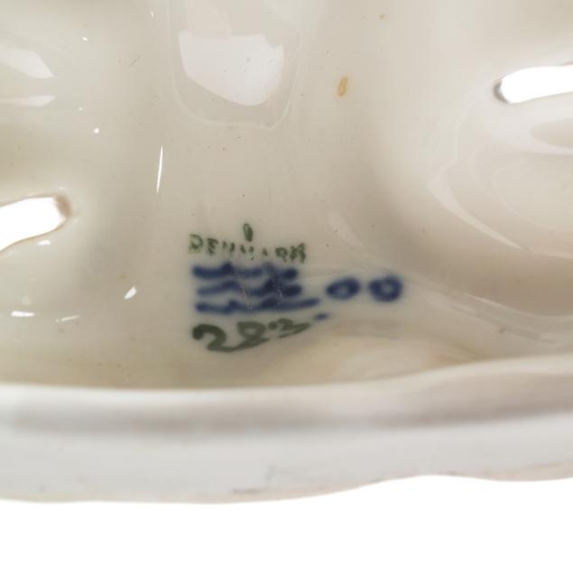 1920s-1940s, designed by Arnold Krog (Danish, 1856-1931), model no. 283, hand-painted porcelain with painter's initials, company backstamp, and partial old label to underside, inscribed "AK" to nest form base.