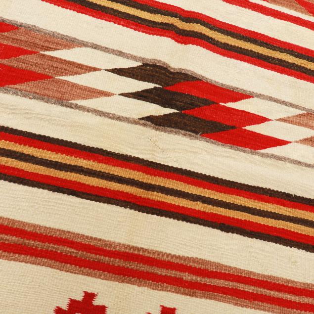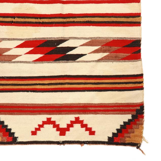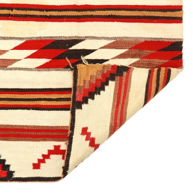 Wool, with stripes of cream, red, brown, and golden yellow.