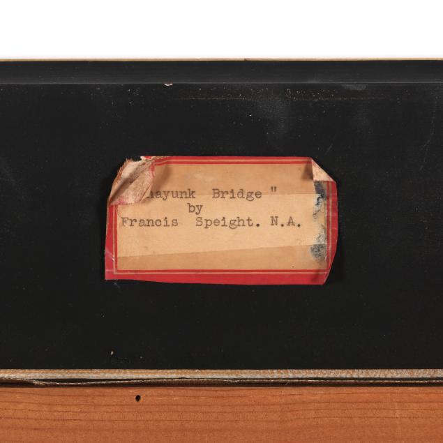 In 1925, Speight graduated from the academy but stayed as a painting and drawing instructor until 1961. This period of his work is characterized by tender scenes of the blue collar industrial towns surrounding Philadelphia. Bathed in dramatic rays of sun, or soft shadows, these paintings and their compositions seem to sway and dance across the canvas.